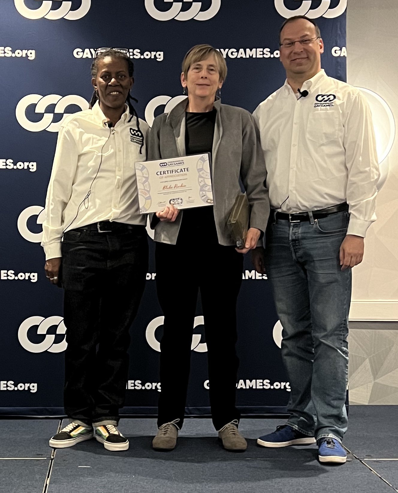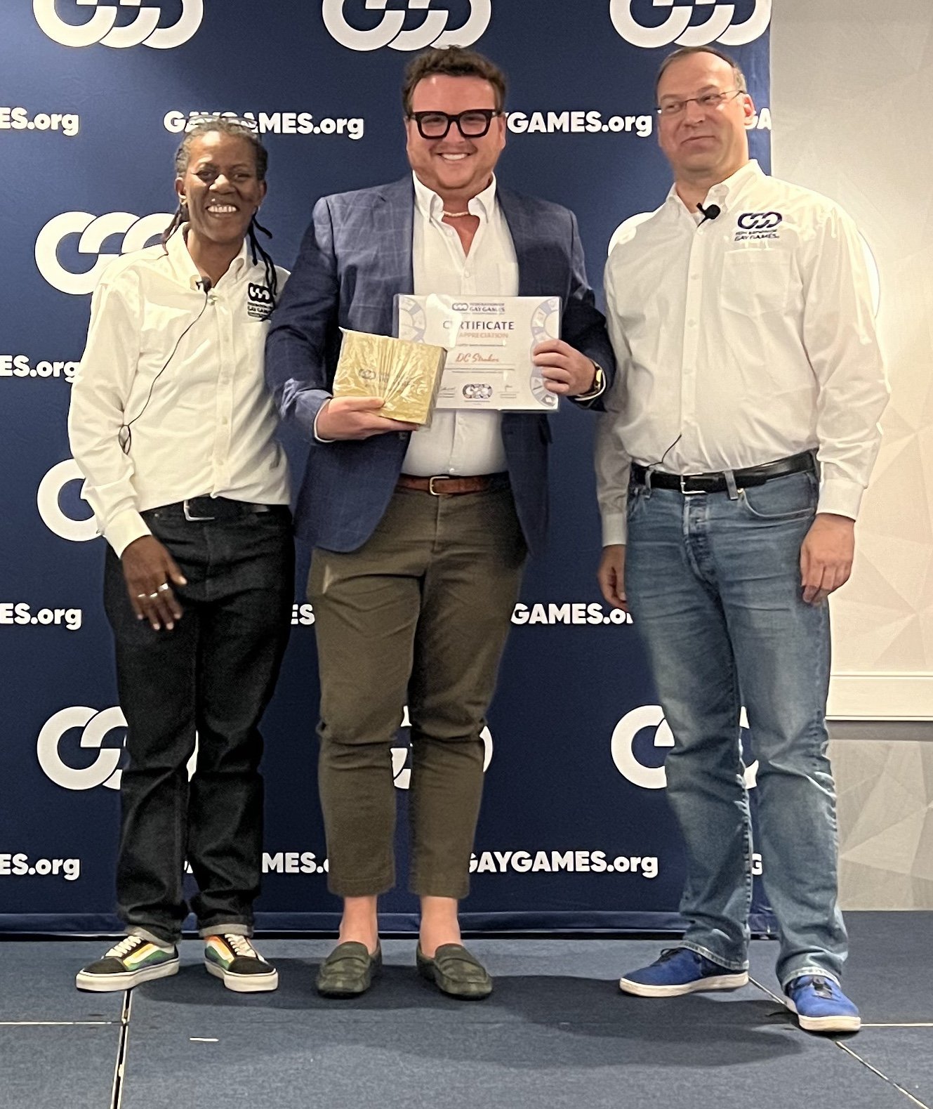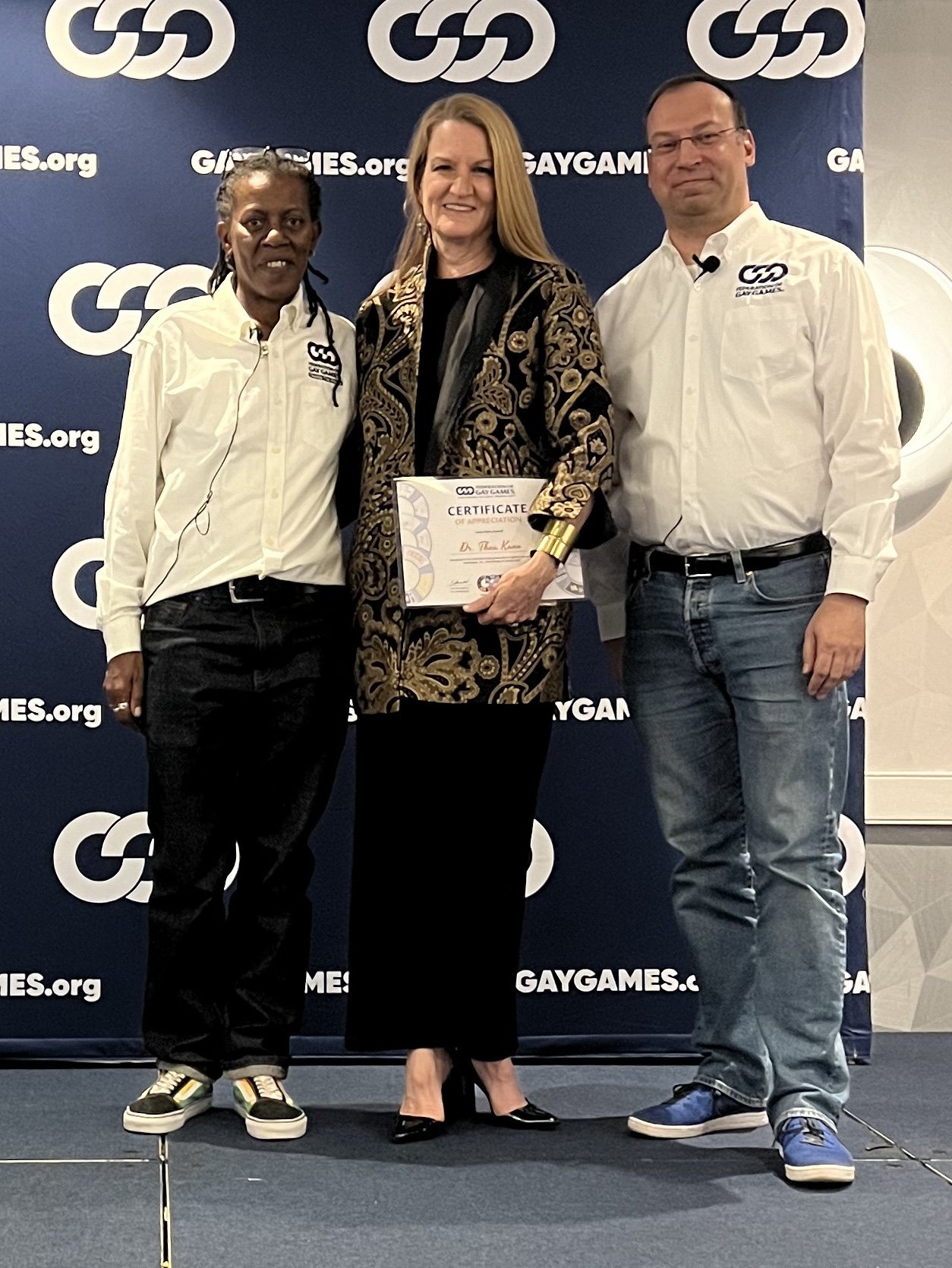Local Hero Award - DR. Hayley Dingerdissern. Recognized for her exceptional leadership and resilience during a critical moment at the Gay Games XI in Guadalajara, transforming a challenging situation into a unifying triumph for PCA.