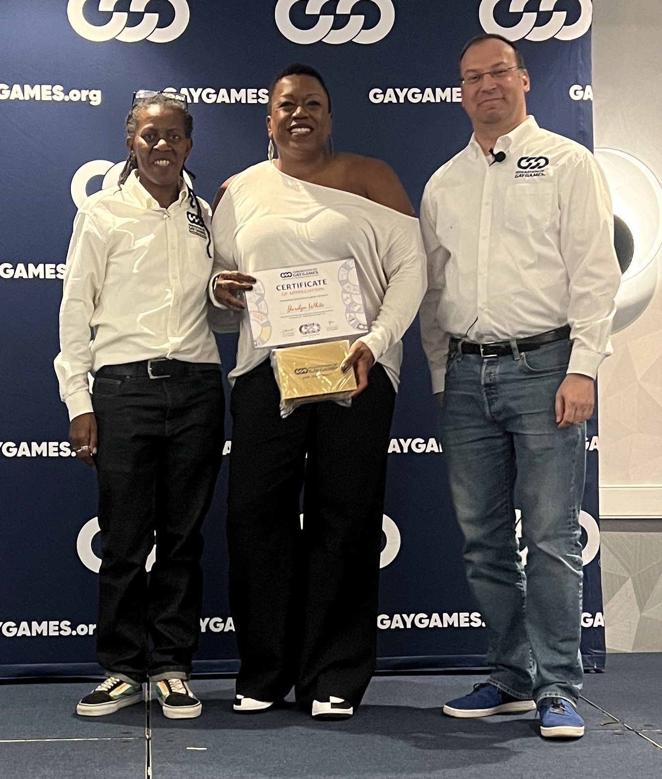 Local LGBTQ+ Outstanding Inspirational Leader Award - Blake Rushin. Celebrated for her impactful leadership in promoting inclusivity and outreach within the LGBTQ+ community through dedicated service on scholarship committees, board membership, and as a track coach.