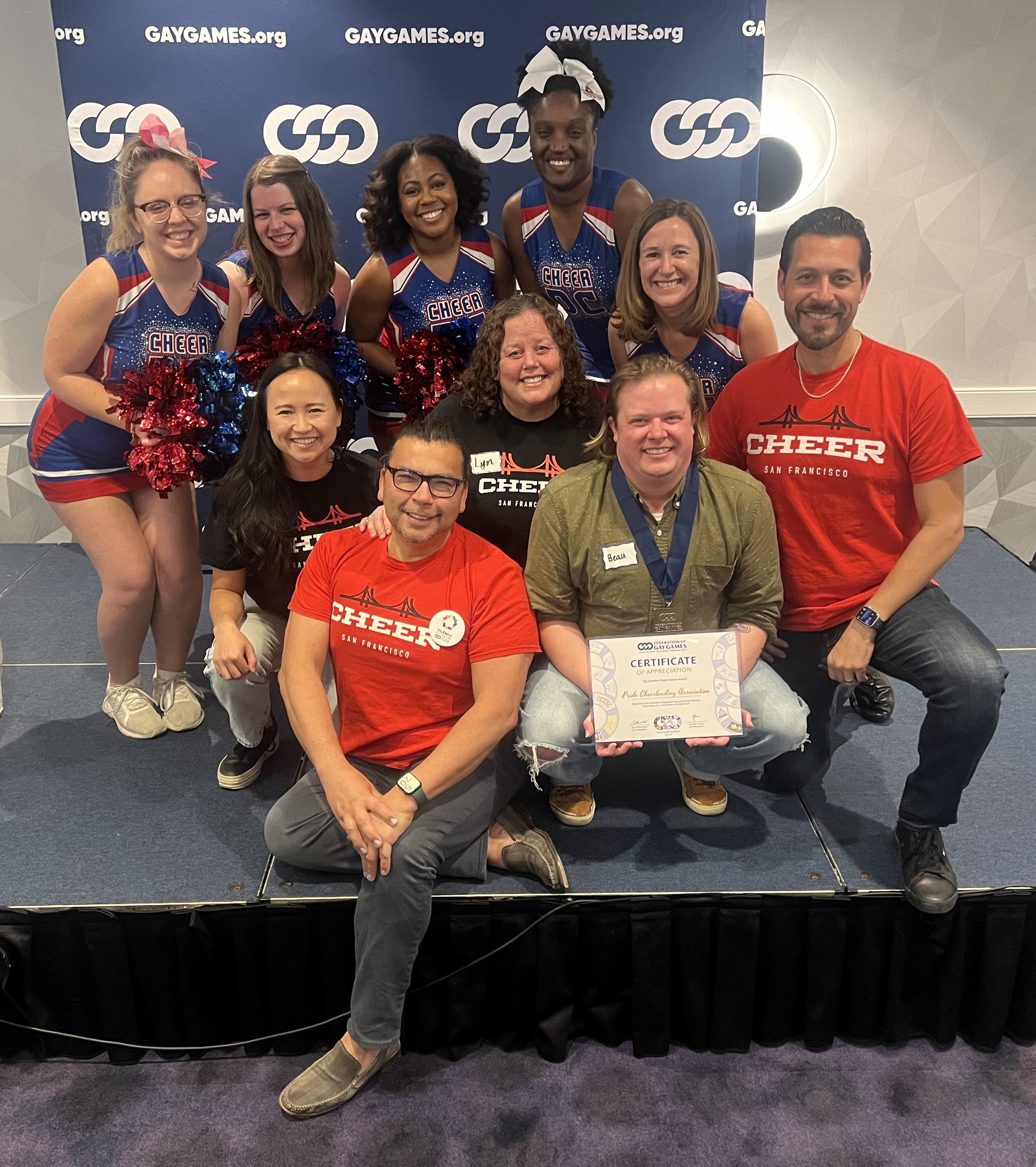 FGG Member Organization Award - Pride Cheerleading Association. Celebrating consistent growth, active participation, and significant impact across major events and fundraisers, this organization exemplifies leadership and dedication in enhancing LGBTQI+ sports and community initiatives.