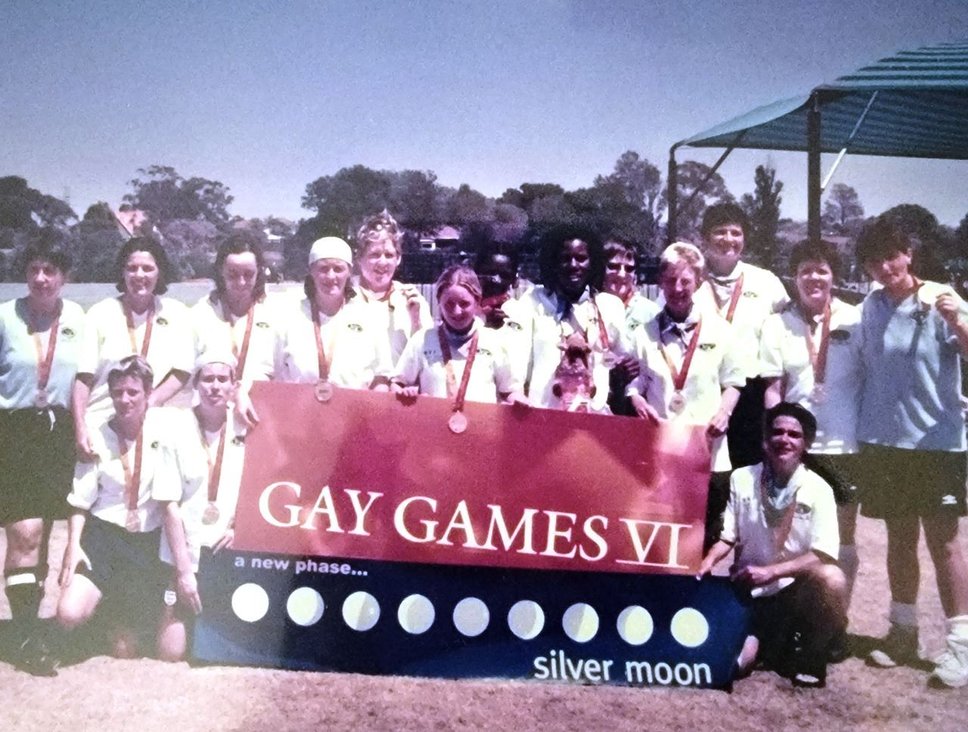 JOANIE EVANS: My greatest Gay Games memory is getting a Gold medal in Sydney 2002. This was not with Hackney, but with a team called Amhurst Aztecs. This team was made up of women from the UK, NZ and Italy and I had played with them in Amsterdam, where we missed out on a bronze. In the run up the games in Sydney, the team met up a week before so we could train together and for some of us to meet for the first time. We played the best football I’ve known for the amateur game and never lost a match.