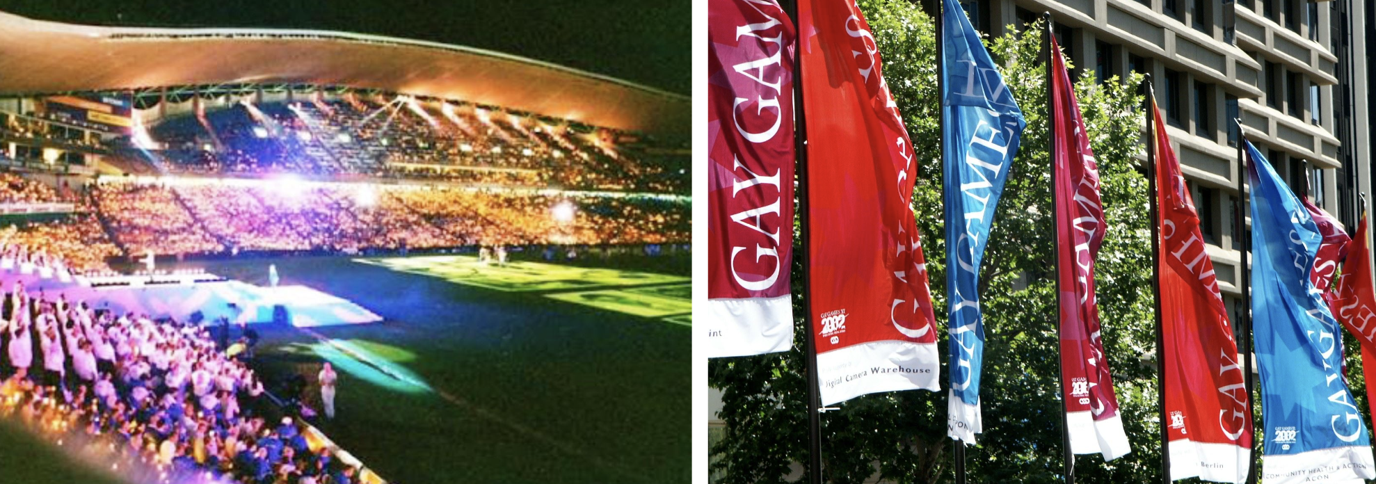 KATHLEEN WEBSTER: The excitement built as the athletes and artists began to fill the Sydney Football Stadium for the Opening Ceremony of the 2002 Gay Games VI in Sydney, Australia. There was also just a hint of nervousness. The horrific events of September 11 had happened a short year before and the bombings in Bali less than a month prior to Opening Ceremony – and here we were beginning a joyous celebration of LGBT community, inclusion and empowerment through sport and culture. Despite these tragedies and a global economic downturn, thousands of participants from more than 70 countries filled the stadium.