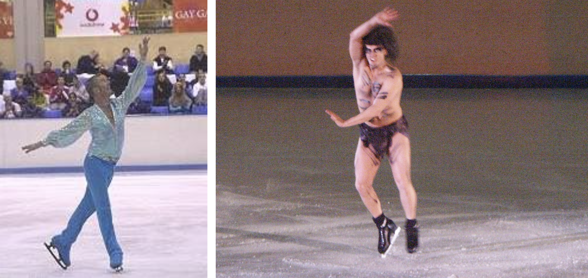 That was part of the reason I always wanted to make my own skating as gay as possible. I did a complete genderfuck number in Sydney. “Macho Girl” had five changes of music in under two minutes. As the music changed “genders” so did my skating style. I skated that number in many mainstream events as well. It was always well received. I may not be able to skate with a woman in competitions outside the Gay Games, but I push the boundaries with queer themed solo programs everywhere I skate.