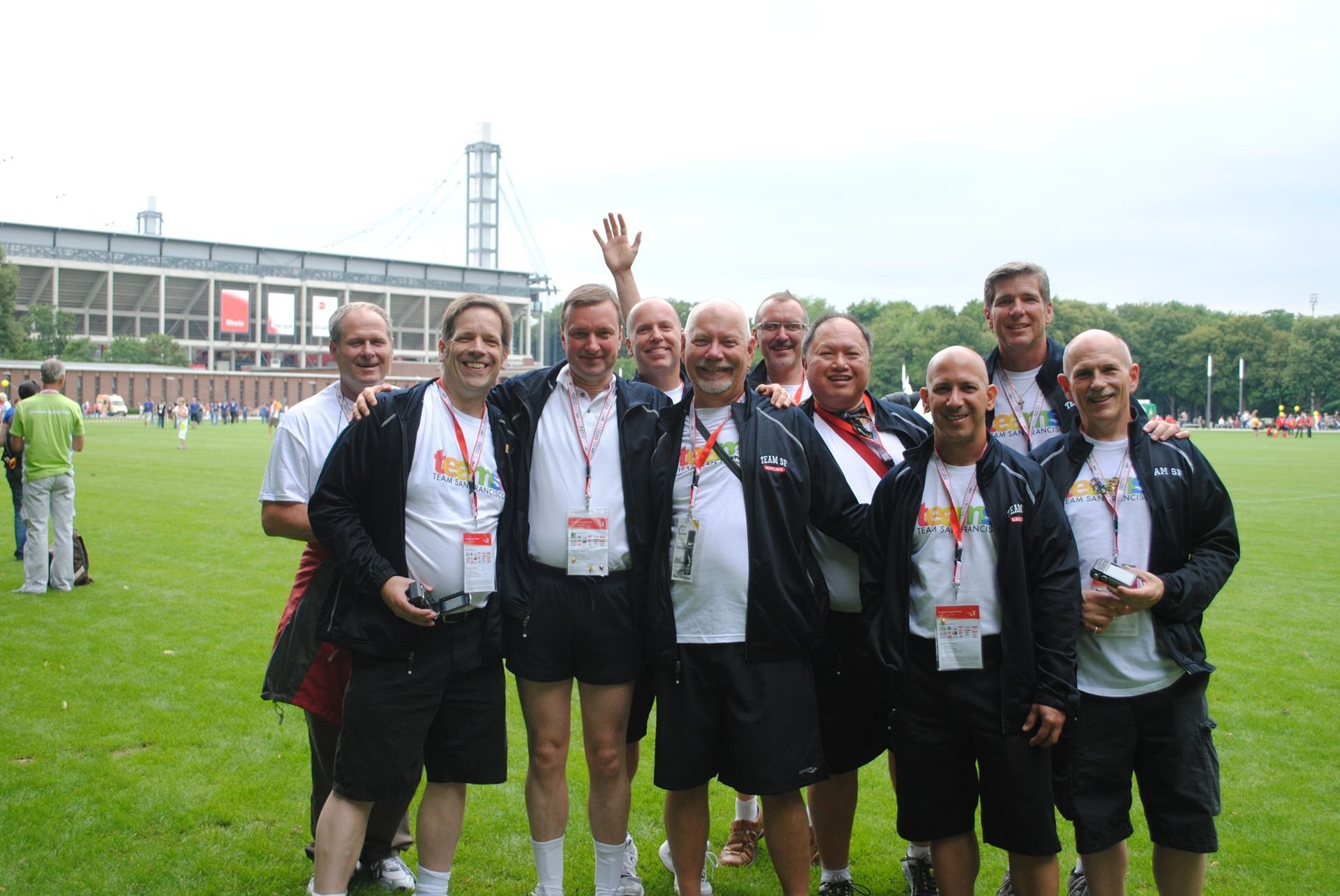 Through “Mama Burke’s” encouragement (CHEER SF founder Steve Burke), I developed a plan and motivated my team to raise money not only for our beneficiaries but also for those that wanted to participate at the next Gay Games. Our accomplishment was beyond my expectations! CHEER SF raised $70,000 to provide transportation and lodging for 40 cheerleaders to compete in Cologne. That’s right, compete! For the first time, cheerleading would be an adjudicated event at the Gay Games! Despite the heavy rainfall during competition, friends and fans endured the inclement weather with us, donated generously and CHEER SF brought home a gold medal! Further, the FGG recognized our efforts by awarding us a “Legacy Award for Excellence” in fundraising. Attending our awards ceremony was my first “inside” experience at the Gay Games.