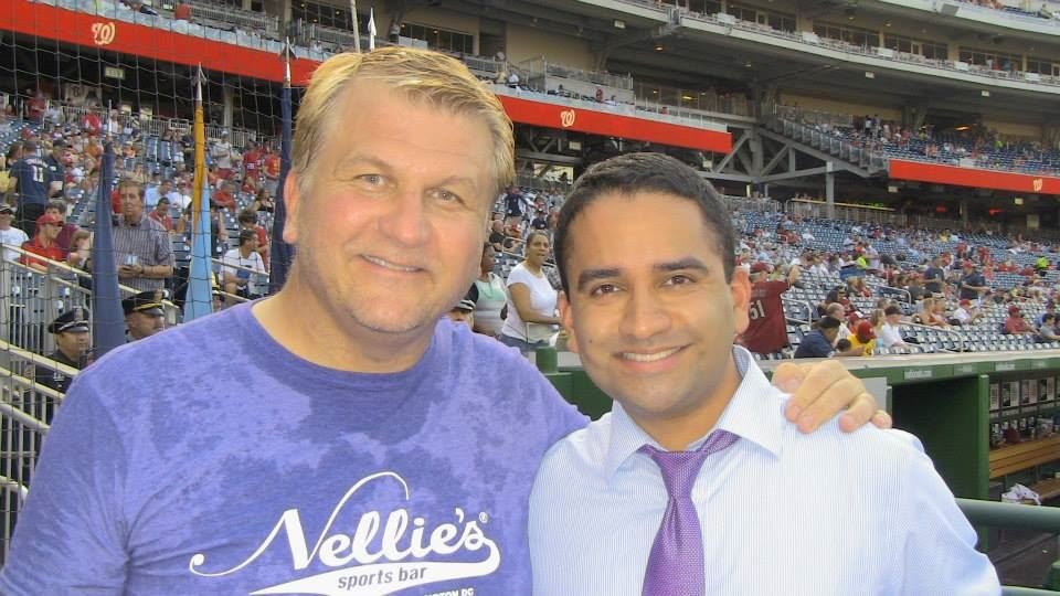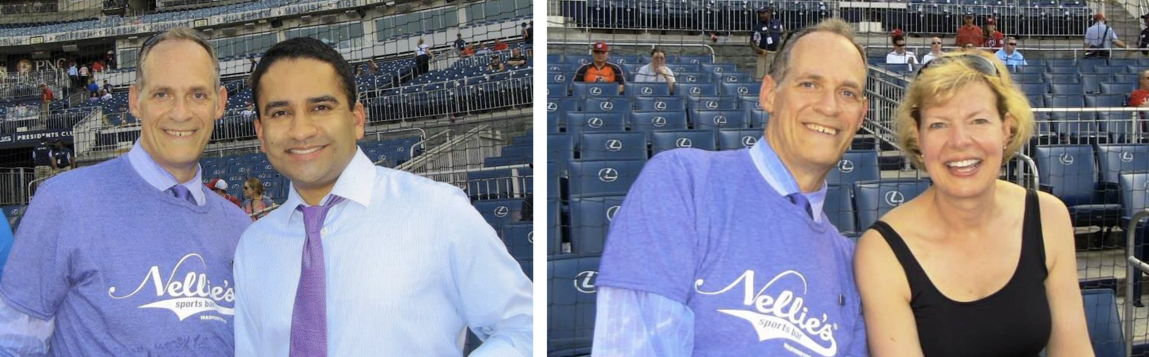 FGG Honorary Life Member Les Johnson with Gautam Raghavan at the "Night Out With The Nationals" baseball game