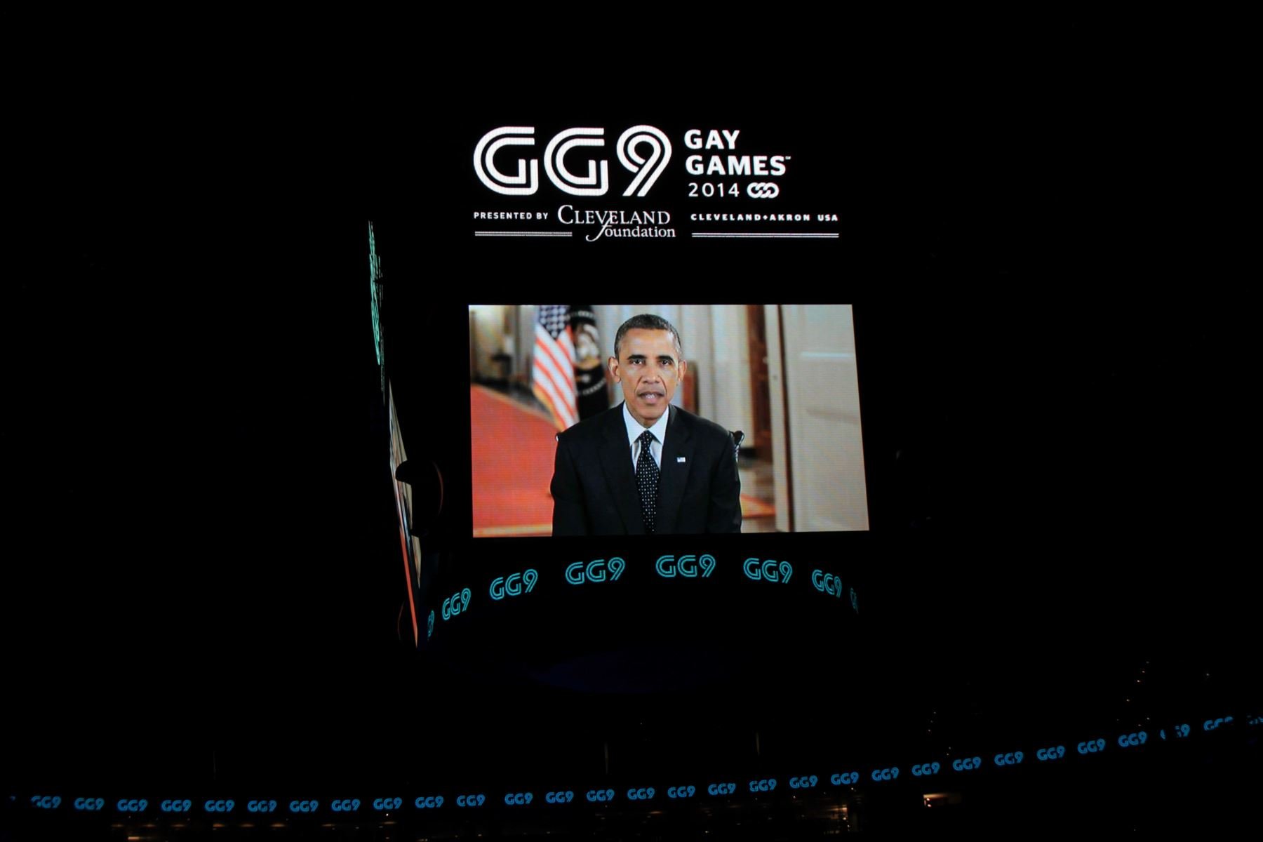 After the Parade of Athletes & Artists came the singing of the national anthem. The auditorium was in darkness, as the music and applause faded. For a second, there was silence. And then, the four-sided Jumbotron in the middle of the Q Arena was lit up with President Obama saying: “Hello, Everybody, and welcome to the United States, and to Cleveland and Northeast Ohio.” Of course, no one probably heard him say anything after “Everybody,” given the thunderous burst of gasps and applause, followed by massive shushing. He continued: