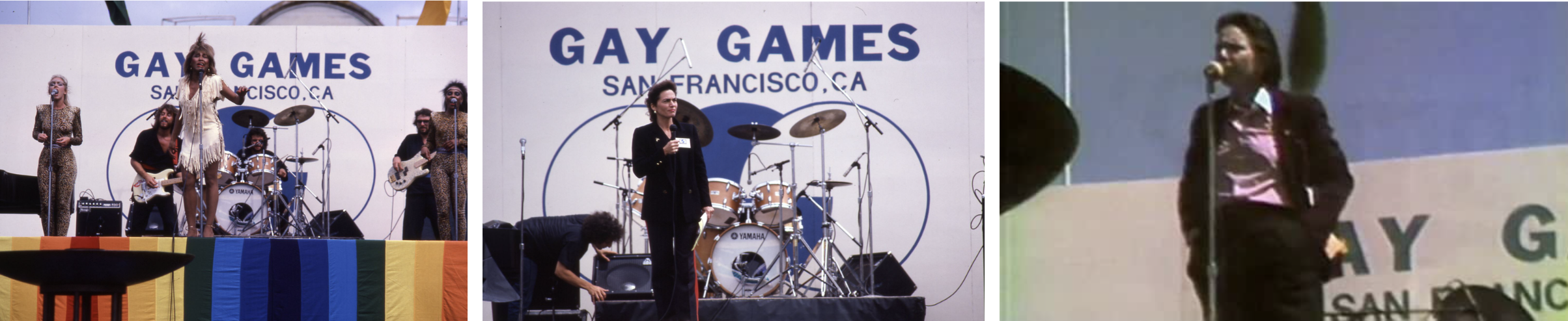 Gay Games I (L to R): Tina Turner, Rita Mae Brown, Mary Dunlap