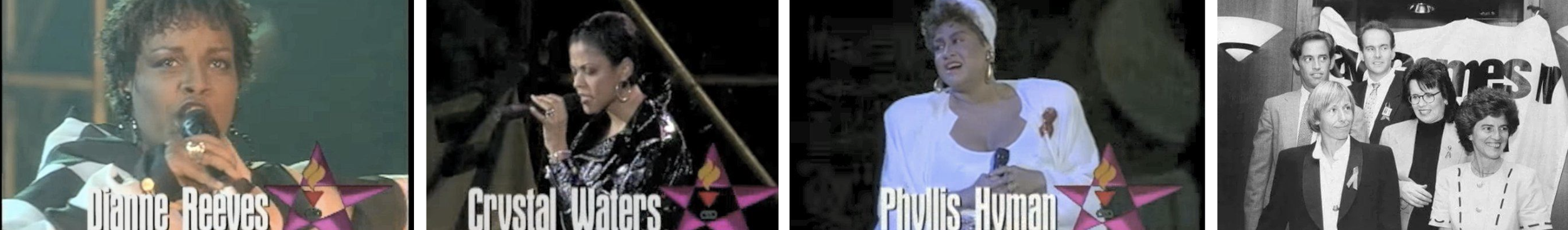 Entertainers: Harvey Fierstein, Cyndi Lauper, Patti LaBelle, Greg Louganis, Suzanne Westenhoefer, Barbara Cook, Kathy Najimy, Armistead Maupin, Sir Ian McKellen, Desmond Child, Crystal Waters, Phyllis Hyman, Lillias White