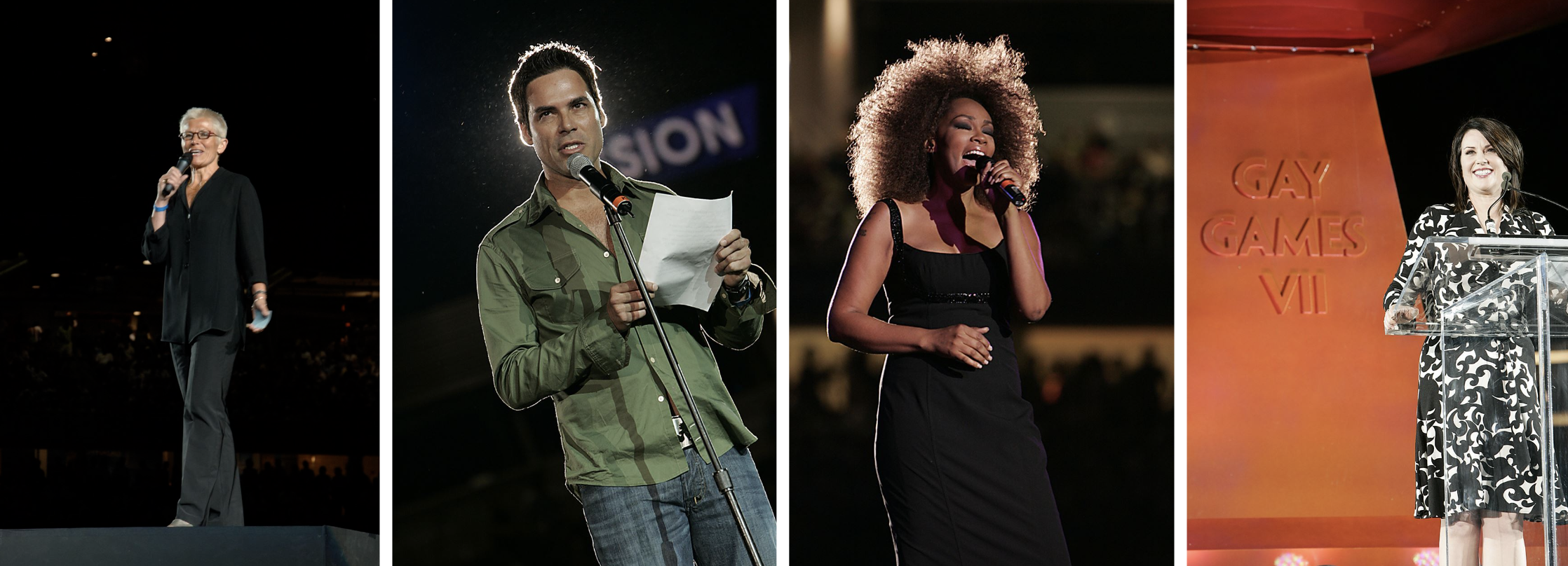 Listed and pictured below are those dignitaries, entertainers, and celebrity athletes who have graced the Gay Games Opening and Closing Ceremonies with their presence.