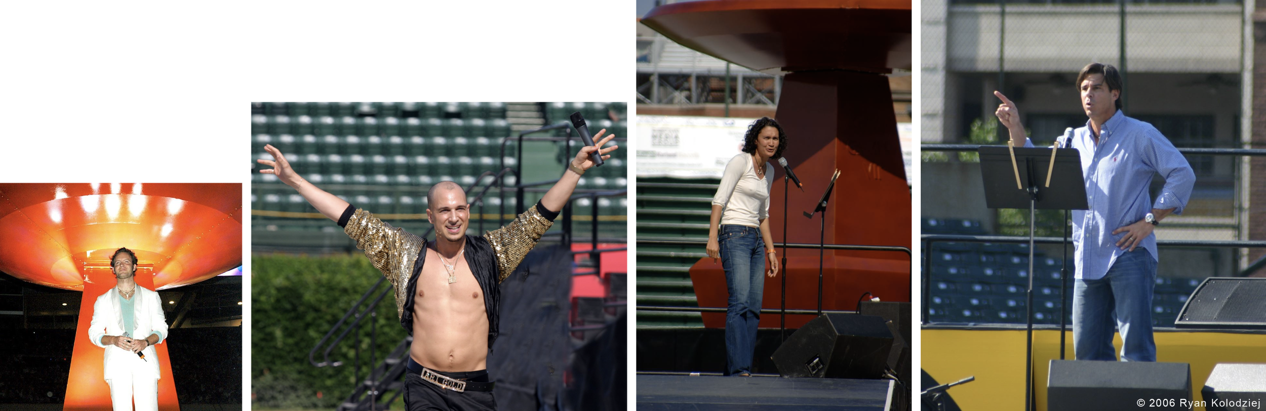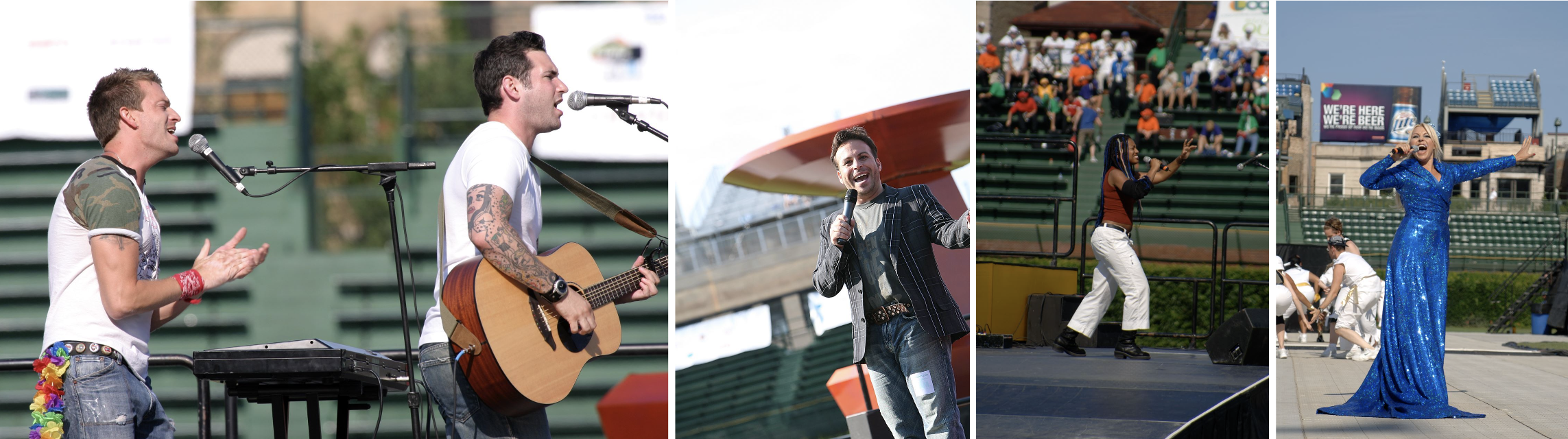 Entertainers: Jimmy Somerville, Jason & deMarco, Billy Porter, Ari Gold and the Broadway cast of Avenue Q, Cyndi Lauper, Erasure’s Andy Bell, Megan Mullally, Ant, Sharon McKnight, George Takei, Margaret Cho, Kate Clinton, Holly Near, Barbara Higbie, Nedra Johnson, Teresa Trull, Jody Watley, Cirque du Soleil performers, Suzanne Westenhoefer, Heather Small, Betty, Levi Kreis & Eric Himan, Ant, Doria Roberts, Kristine W.