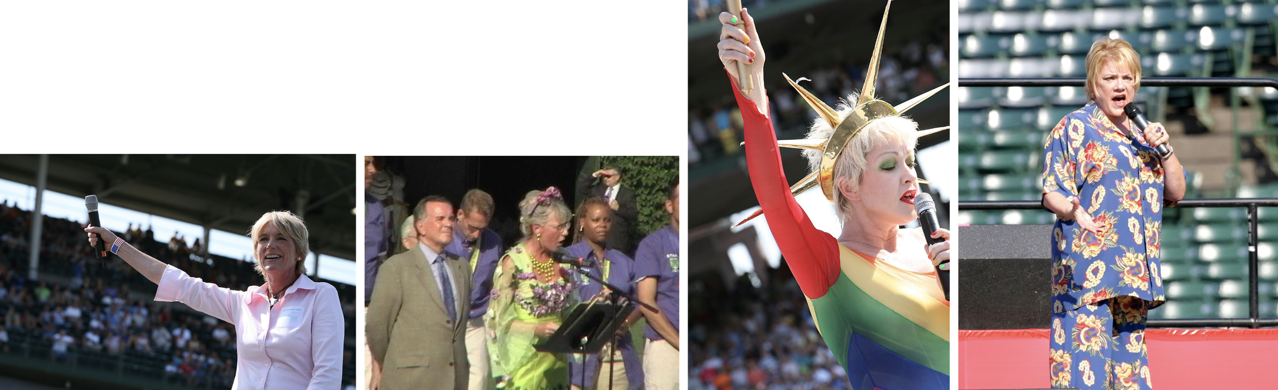 Gay Games IV (L to R): Patti LaBelle, Cyndi Lauper, Barbara Cook, Armistead Maupin