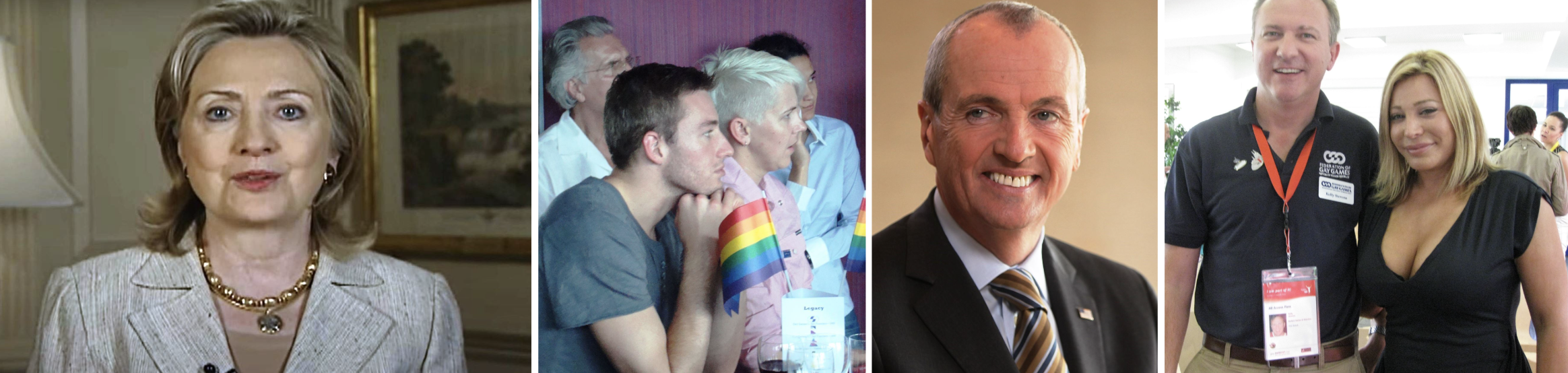 GGVIII: (L to R) Hillary Clinton, Matthew Micham & Michelle Ferris (Dave Kopay in background), Ambassador Phil Murphy, Taylor Dayne & FGG Officer of Communications Kelly Stevens