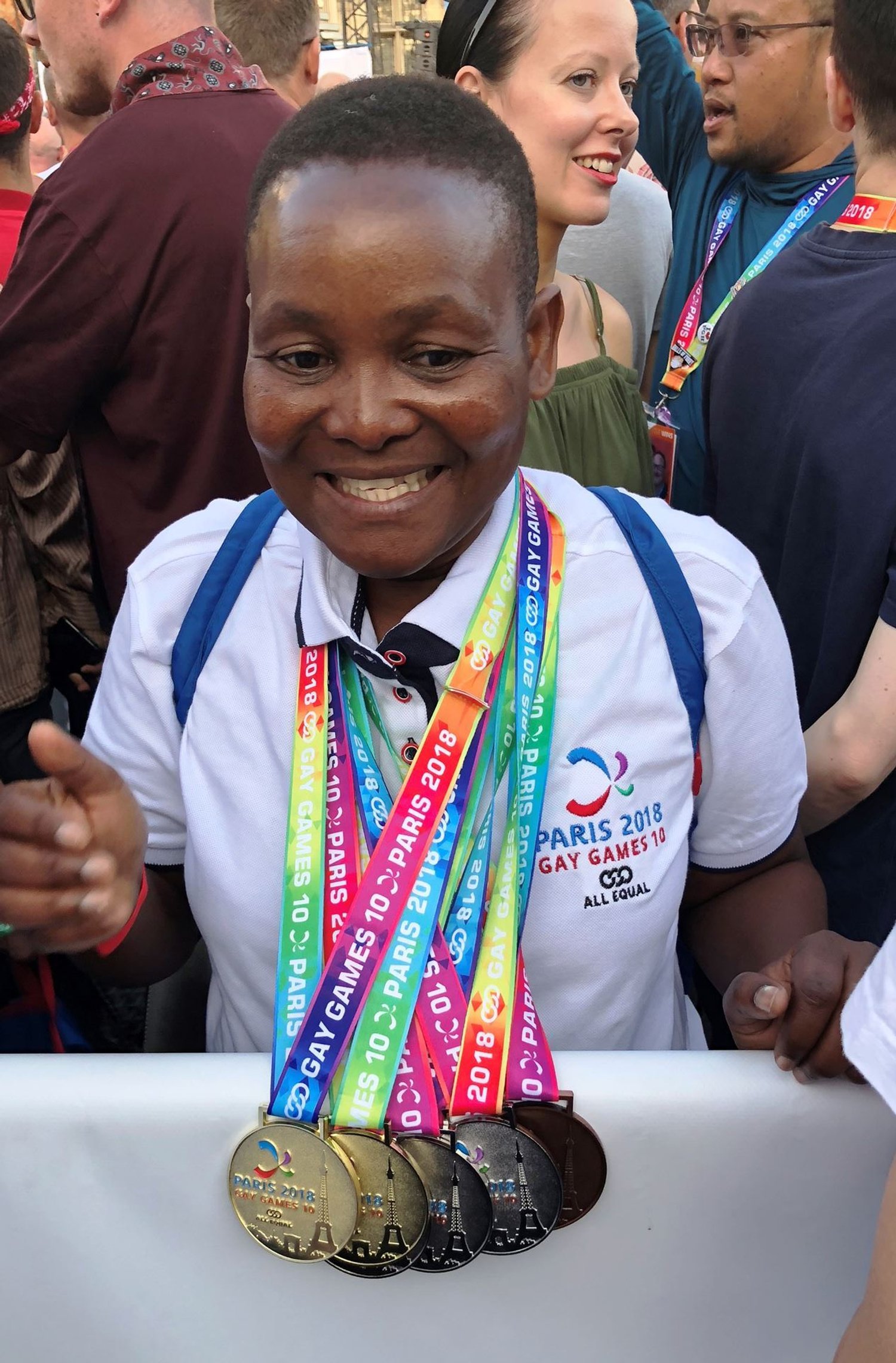 HLENGIWE BUTHELEZI: Great games with 7 medals (3 Golds, 3 Silvers & 1 Bronze). This is a year I left being an Assembly Member and was elected to FGG Board of Directors as an Officer at Large. When I returned home, I was honoured with the Feather Award of Sports Personality of the Year, a prestigious honour, because of the cumulative work I have done for the Queer community over the years, including the Gay Games achievements, and founding the AfroGames, which debuted in December 2018.