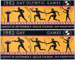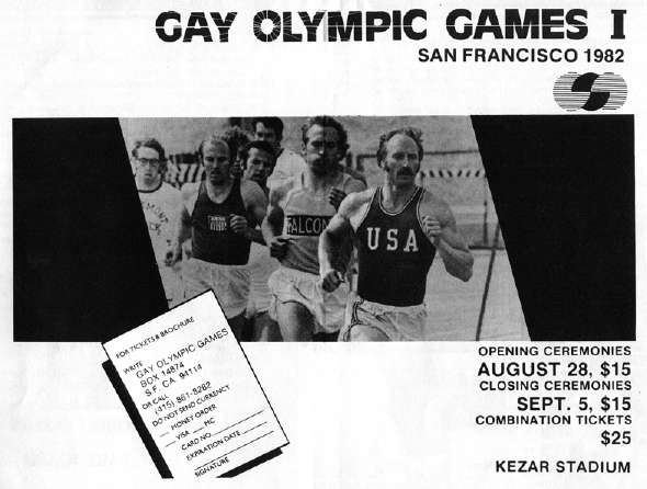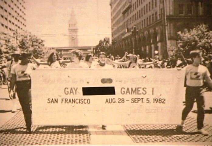 SARA WADDELL LEWINSTEIN: In the last month prior putting on the first Gay Olympic Games, this is what we were all doing: crossing out the word Olympic from EVERYTHING! Shirts, posters, medals, EVERYTHING! Tom was also securing advertising for our first program; he was everywhere. Speaking on radio programs, board meetings, and he took over last minute as the sports director, along with myself. We were both the International Sports Co-Directors, which happened in the last month. We were everywhere doing everything last minute, especially with trying to get as many entries as possible. Everything was last minute. Men and Women coming together for the first time in his/her story. The First Gay Bleep Games! What a sight for sore eyes, as we everyone started arriving.